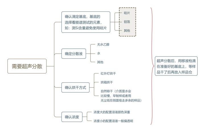 2.液體樣品。用移液槍取樣品超聲后的懸濁液,滴一滴于硅片、錫紙或鋁箔上,自然風(fēng)干、烘箱烘干或者紅外燈烘干即可,烘干后將硅片、錫紙或鋁箔用導(dǎo)電膠粘在樣品臺上測試。